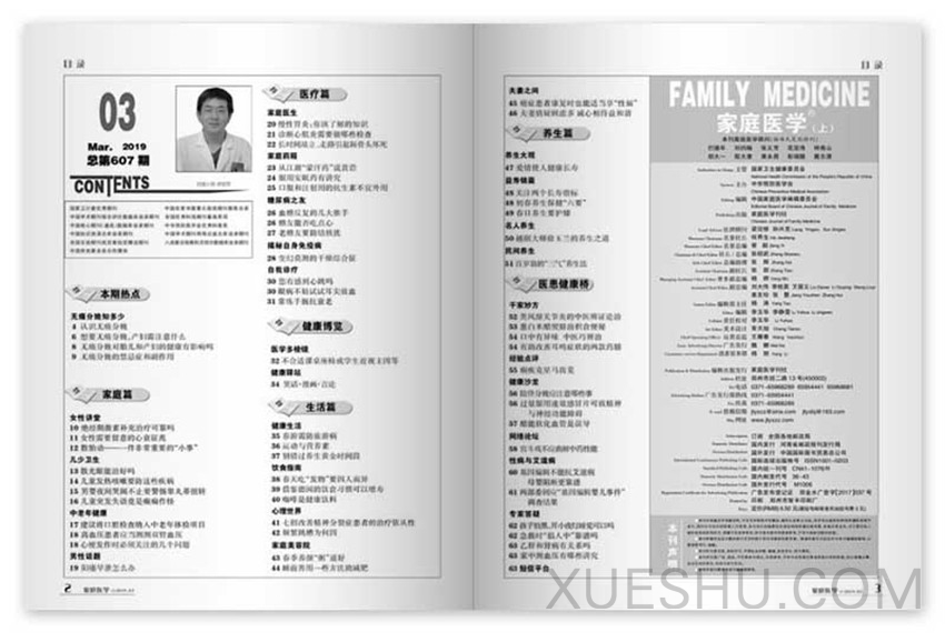 《家庭医学》是由国家卫生和计生委员会主管、中华预防医学会主办的部级医学优秀科技期刊,国内外公开发行。图文并茂,前沿信息与传统理念并存,视角开阔;言论、笑话针砭时弊,极具可读性与趣味性。古今中外的养生理念,名人名医的保健经验、“益寿锦囊”以及百姓们独特而有效的健康秘诀。